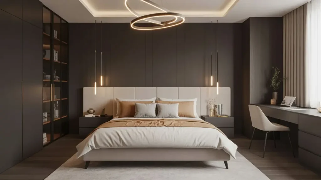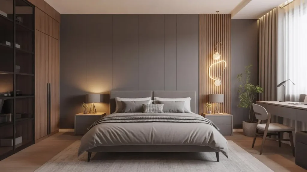 Ever walked into a room and immediately felt sophisticated? That’s what a charcoal panel accent wall does to your bedroom. I’m talking about those sleek, geometric panels that add dimension without screaming for attention.