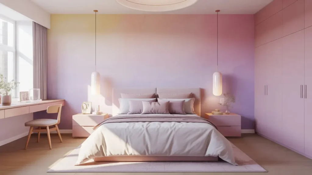 Pastel ombre works particularly well—think soft pinks fading to peach, or lavender transitioning to pale blue. These colors create a calming, ethereal vibe perfect for bedrooms. I’ve seen people do this horizontally (light at top, darker at bottom) or vertically for a different effect.