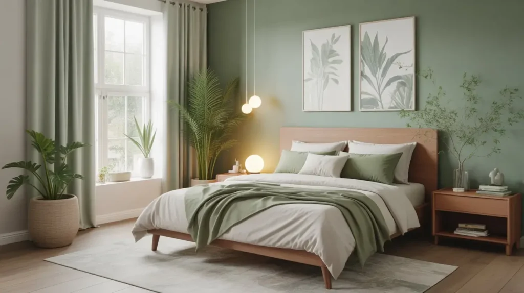 Sage green has officially replaced gray as the “safe but stylish” color choice, and I couldn’t be happier about it. This soft, muted green brings nature indoors without looking like you’re sleeping in a forest.