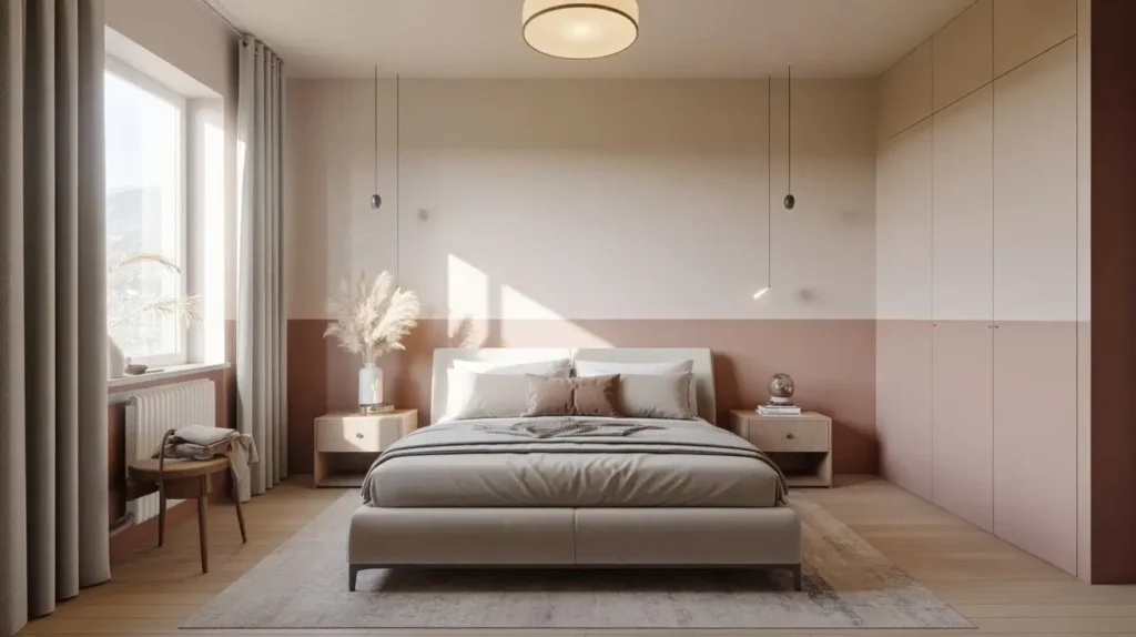 I love this approach because it’s unexpected. Most people paint walls one solid color and call it a day. But dividing your wall horizontally with two complementary colors? That’s next level. You can go classic with navy on bottom and white on top, or get creative with blush and terracotta, sage and cream, or charcoal and beige.
