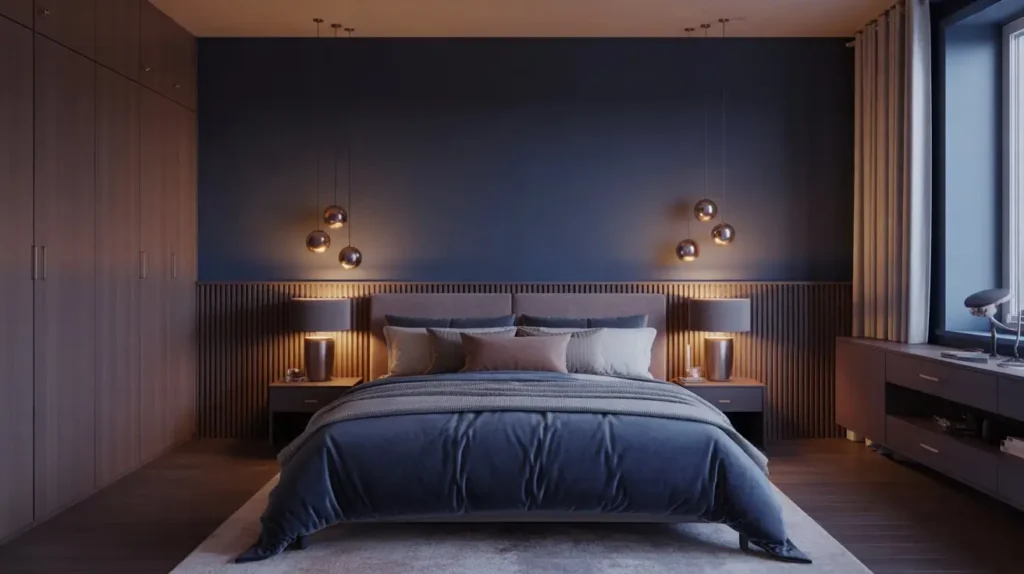 Want your bedroom to feel like a cozy cocoon? Paint one wall in a deep navy blue. This color is having a serious moment right now, and for good reason—it’s sophisticated, calming, and works in literally any season.