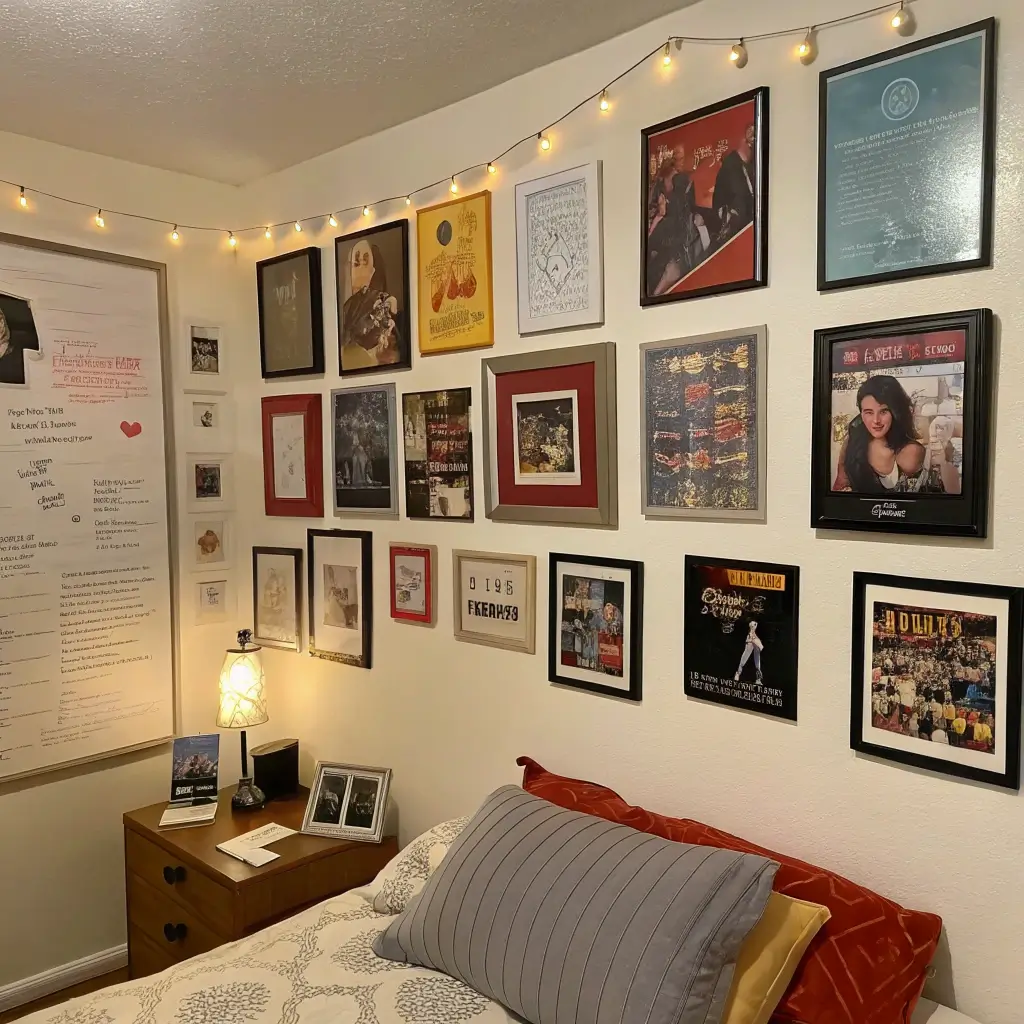Who says you can’t put Taylor Swift next to Black Sabbath? Modern pop culture walls celebrate everything from K-pop to classic rock, creating conversations through unexpected combinations. My grid has Beyoncé neighboring Bowie, and honestly, they look great together.