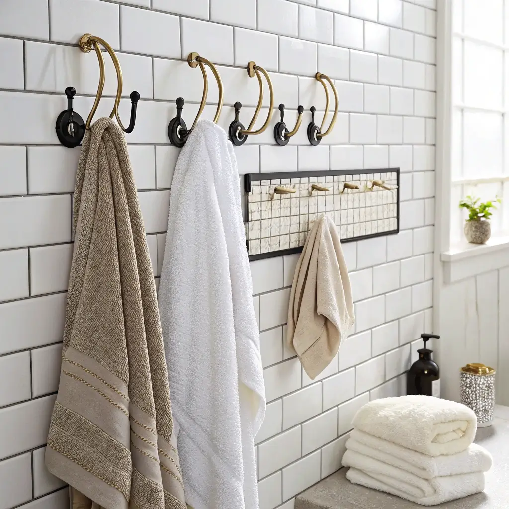 The genius of decorative hooks as bathroom wall decor lies in their dual purpose. They hold your towels, robes, and loofahs while simultaneously adding character to your walls. You eliminate the need for a bulky towel bar and gain a design element in the process.