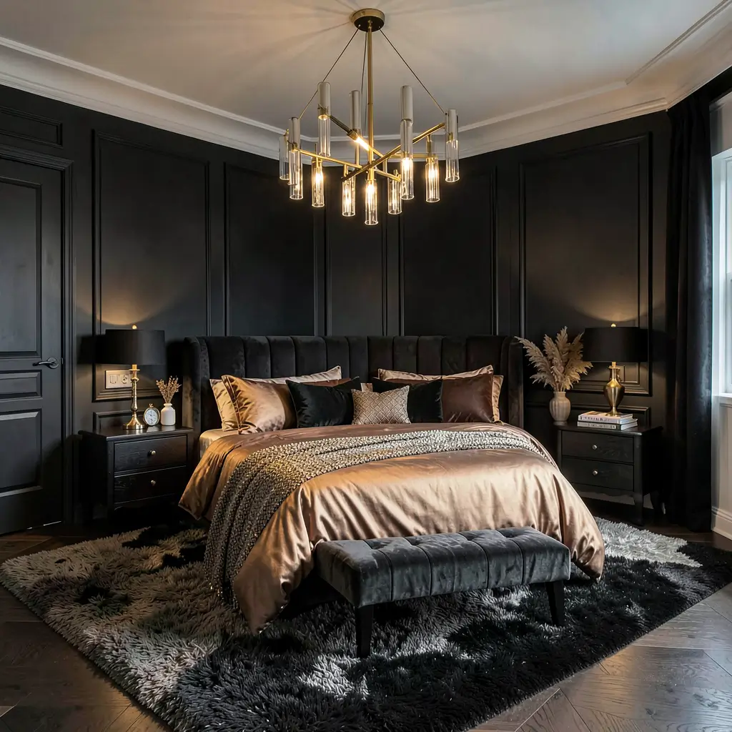 A luxurious black and tan bedroom makes every night feel like a staycation at an expensive resort. This style doesn’t apologize for being indulgent.