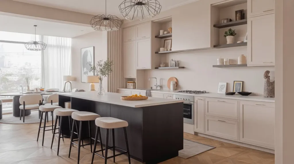 I live in an open-concept space, and using black and white in the kitchen while keeping the living room in softer neutrals creates natural separation. The key is using the color scheme to zone the space without actually building barriers.