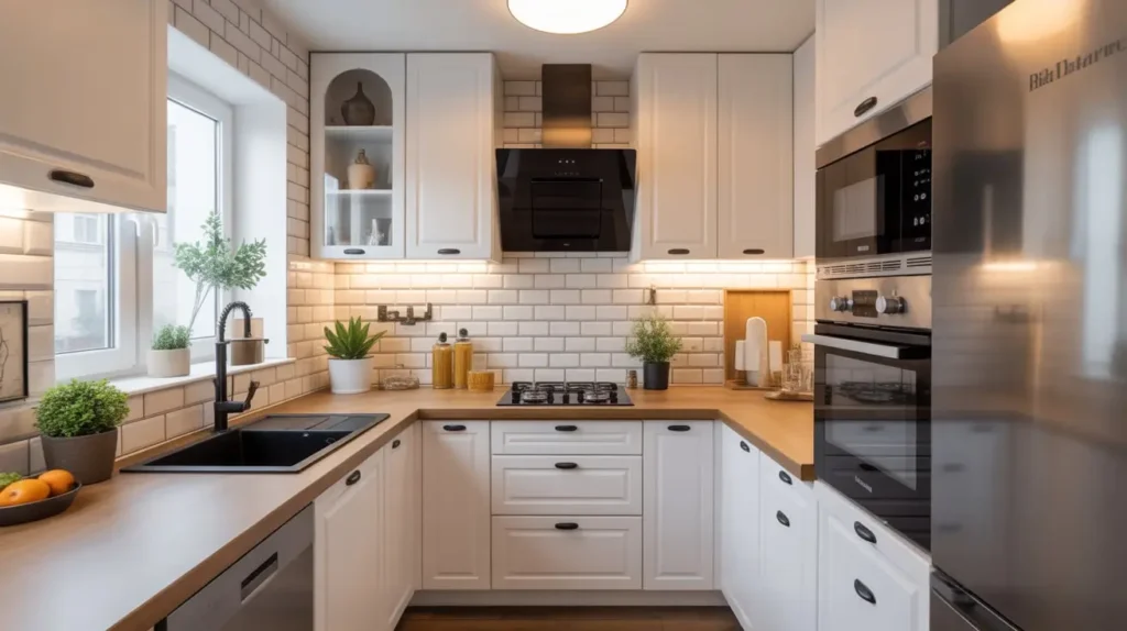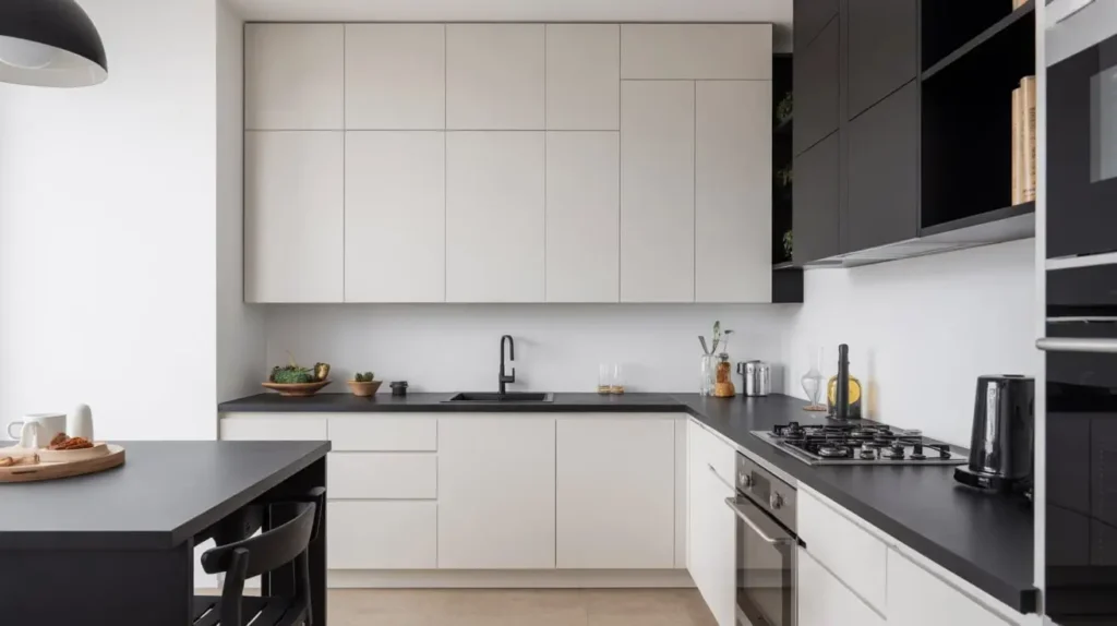 Here’s a trick I learned the hard way: white should dominate in small kitchens. Use black as an accent rather than the main event, or your kitchen will feel like a cave. I once painted my small apartment kitchen mostly black, and it felt like cooking in a closet (not my finest decision).