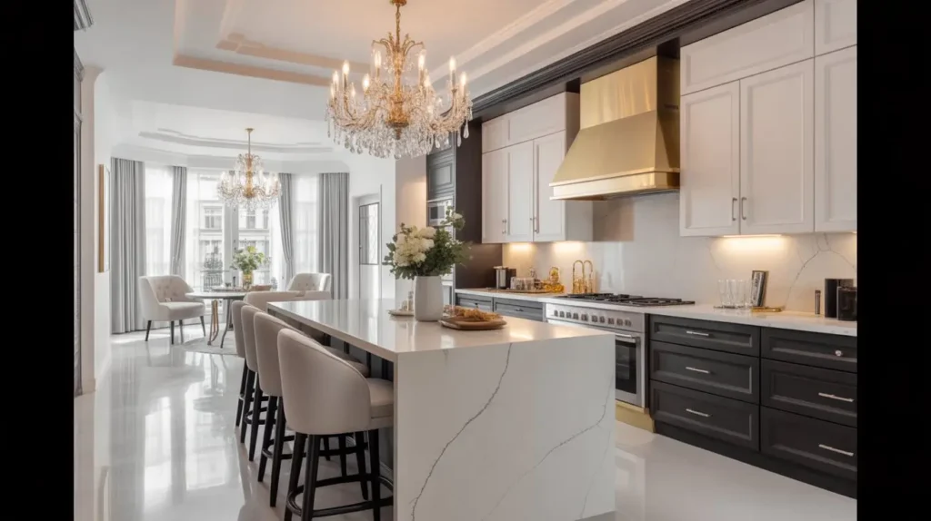 Don’t skimp on lighting. Luxurious kitchens have layered lighting that makes everything look expensive. Under-cabinet LEDs, pendant fixtures, and recessed lights work together to create ambiance that screams “high-end.”