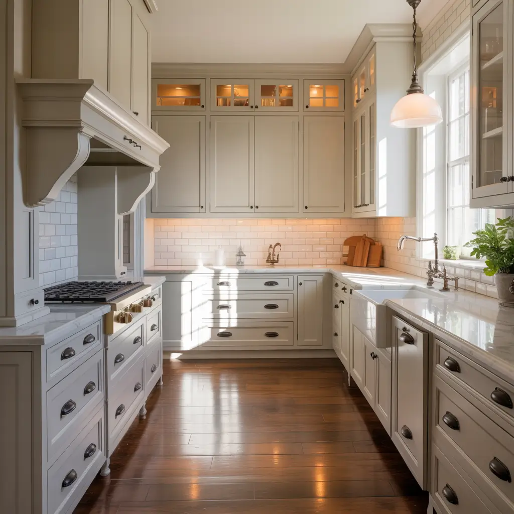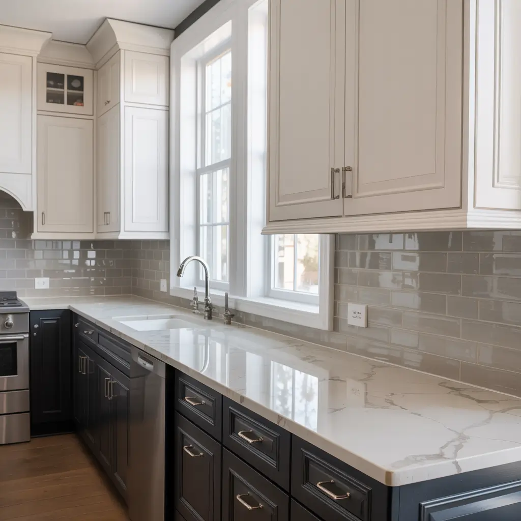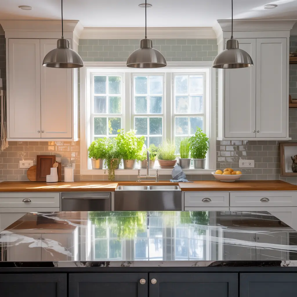 - Mix of modern and traditional materials (like quartz counters with classic subway tile)