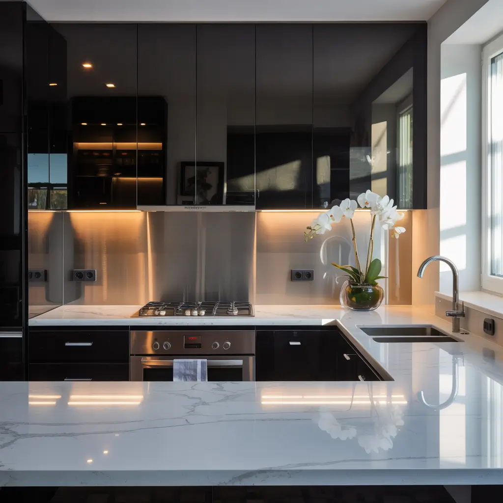 Pair them with white quartz or marble countertops, and you’ve got yourself a winning combination. I visited a showroom last month where they had matte black cabinets with thick white quartz counters, and the contrast was chef’s kiss perfect.