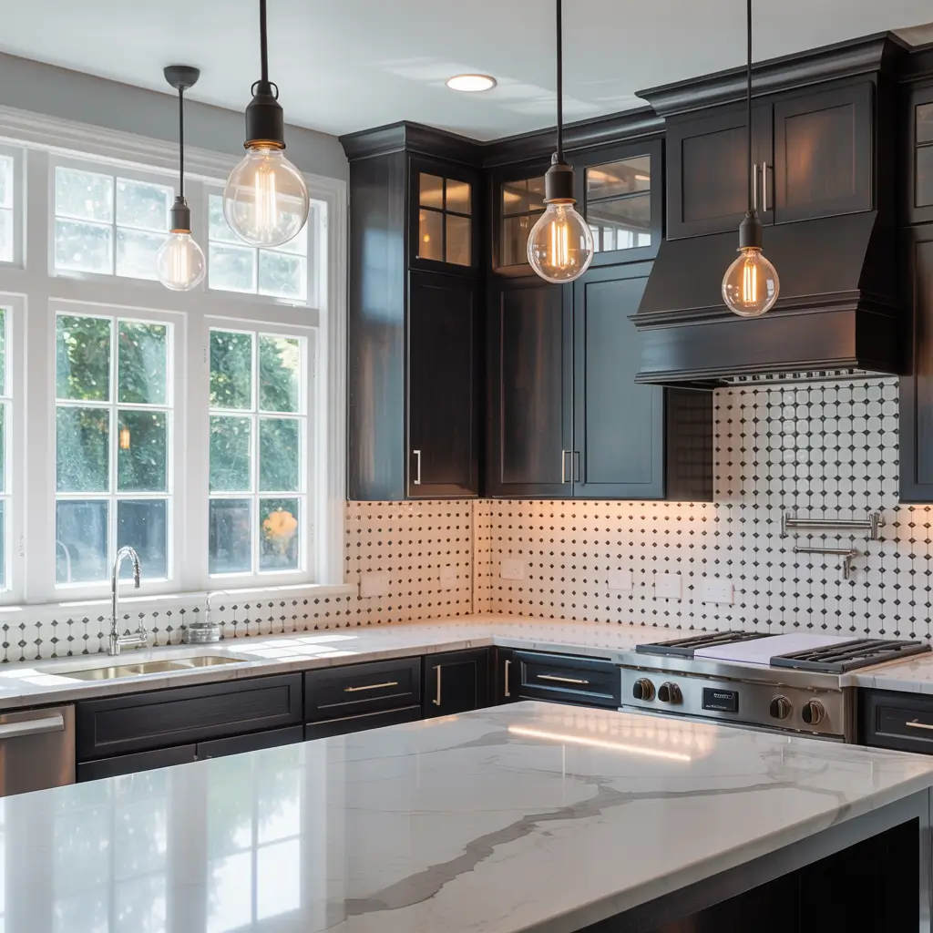 Here’s my advice: if you’re going with black cabinets, choose tiles that have more white than black. You need that contrast to prevent your kitchen from feeling like a cave. White subway tiles with black grout, predominantly white mosaic patterns, or white hexagons with black accents all work beautifully.