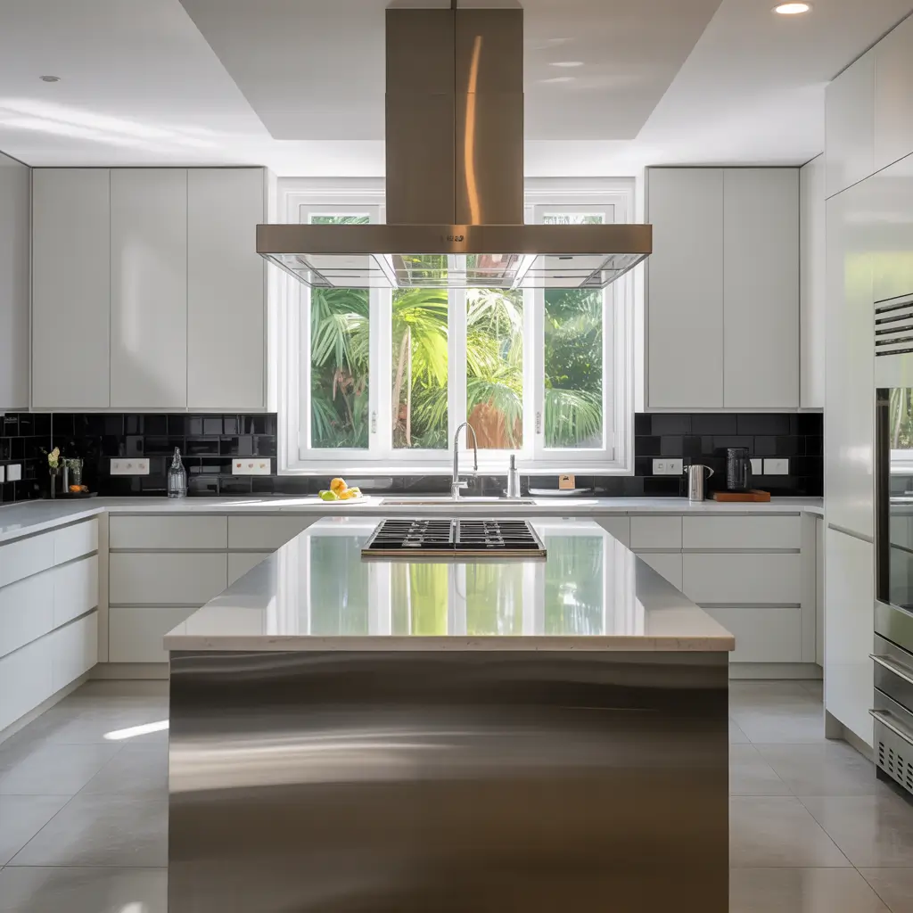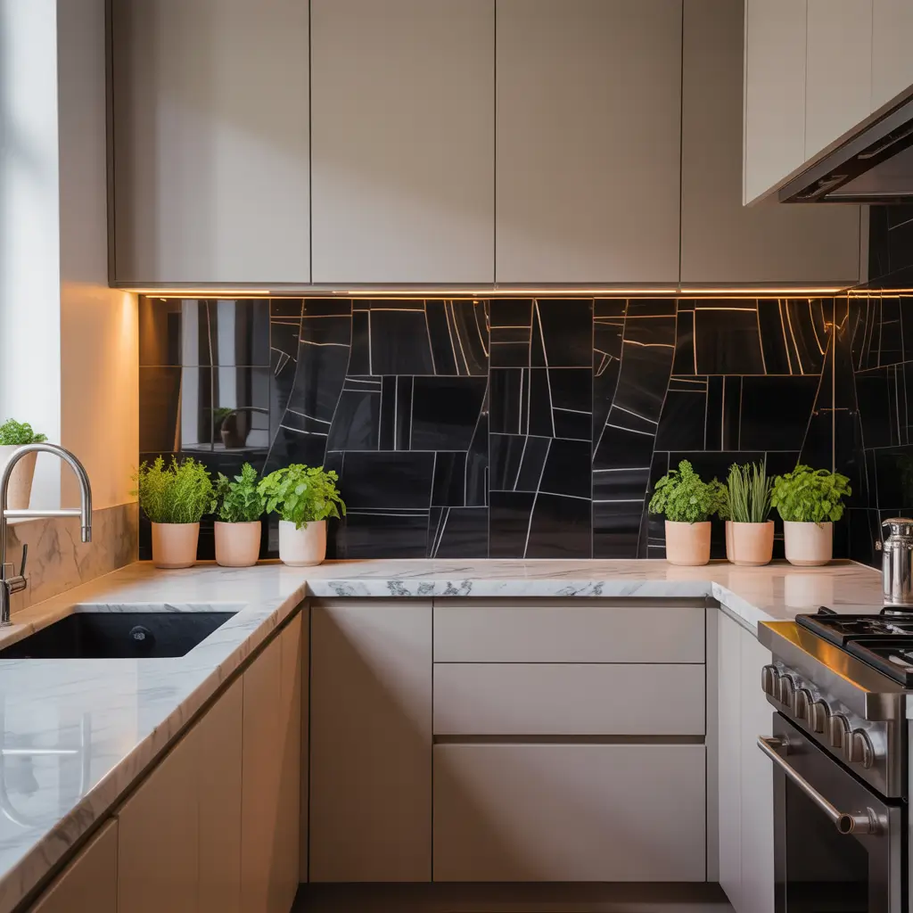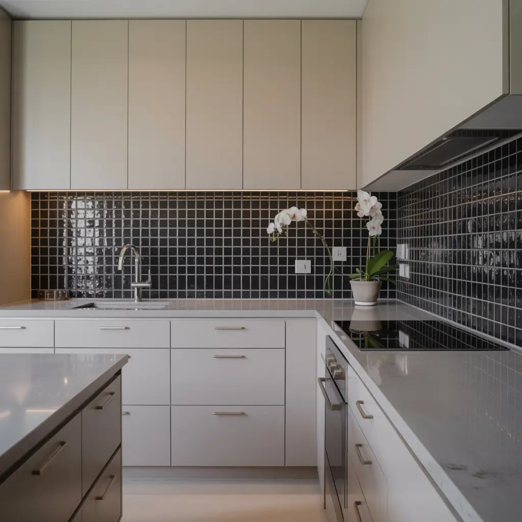 For minimalist kitchens, I love large-format black tiles with minimal grout lines, or even better, those seamless black panels that create one continuous surface. The goal is calm, uncluttered visual space that still has personality and depth.