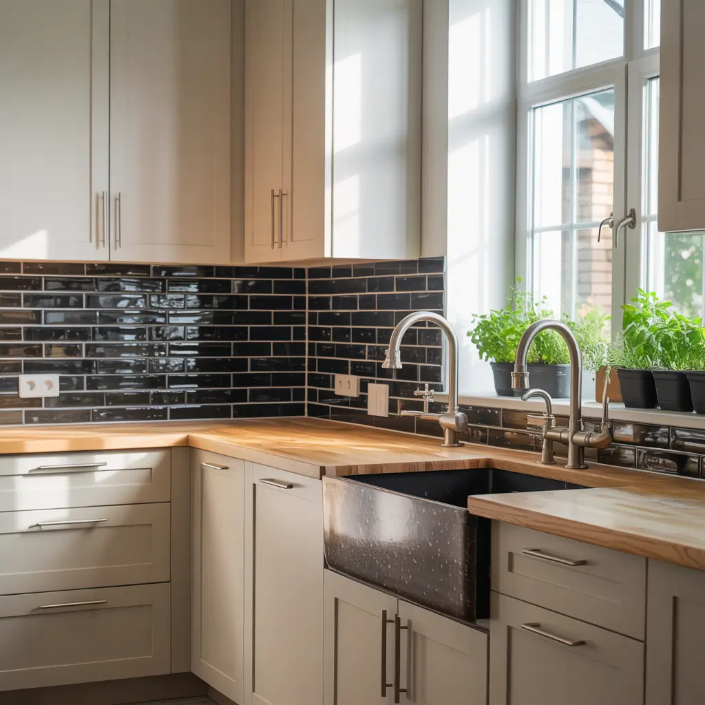 The type of wood matters here. Light woods like maple or white oak create dramatic contrast with black backsplashes, while darker woods like walnut create a more cohesive, moody atmosphere. I helped a friend pair black zellige tiles with natural walnut cabinets, and the result was this incredibly rich, layered look that felt expensive and cozy at the same time.