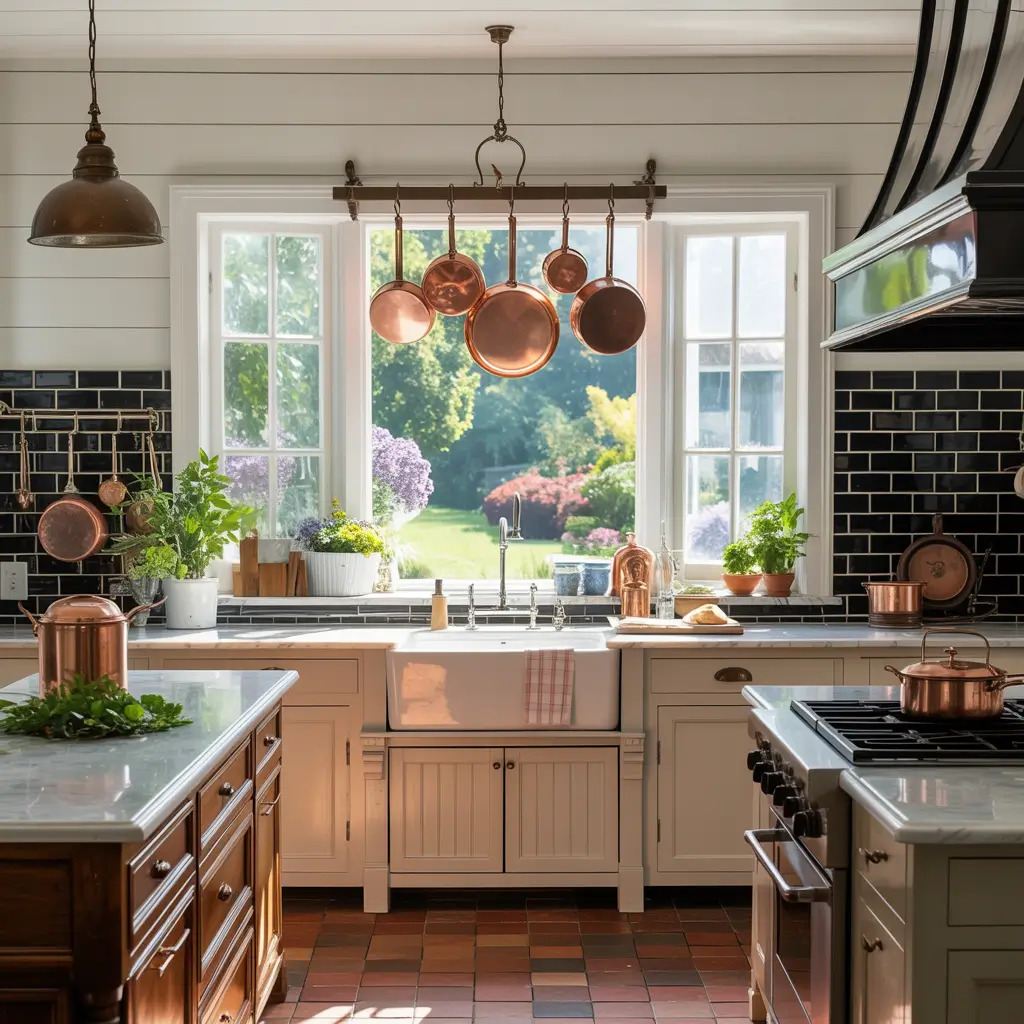 I’ve seen this work incredibly well with black subway tiles in traditional layouts, black brick-style tiles, or even black arabesque tiles for something a bit more decorative. The key is balancing the farmhouse warmth with modern black elements so you don’t end up looking like a saloon from 1885 🙂