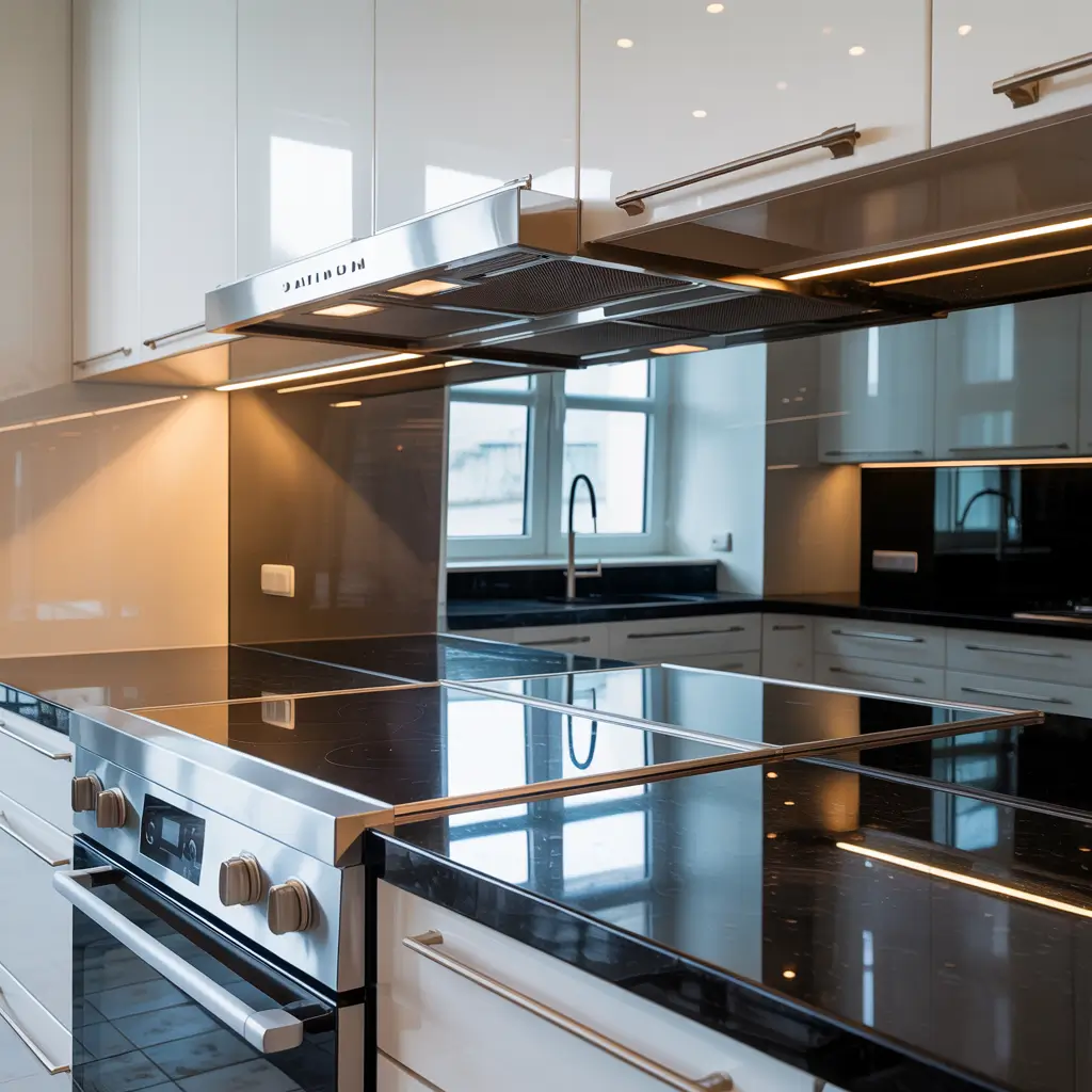Now, I know I just sang matte’s praises, but glossy black deserves its moment too—especially in smaller kitchens. Ever wondered why designers always throw mirrors into tiny spaces? Same principle applies here.