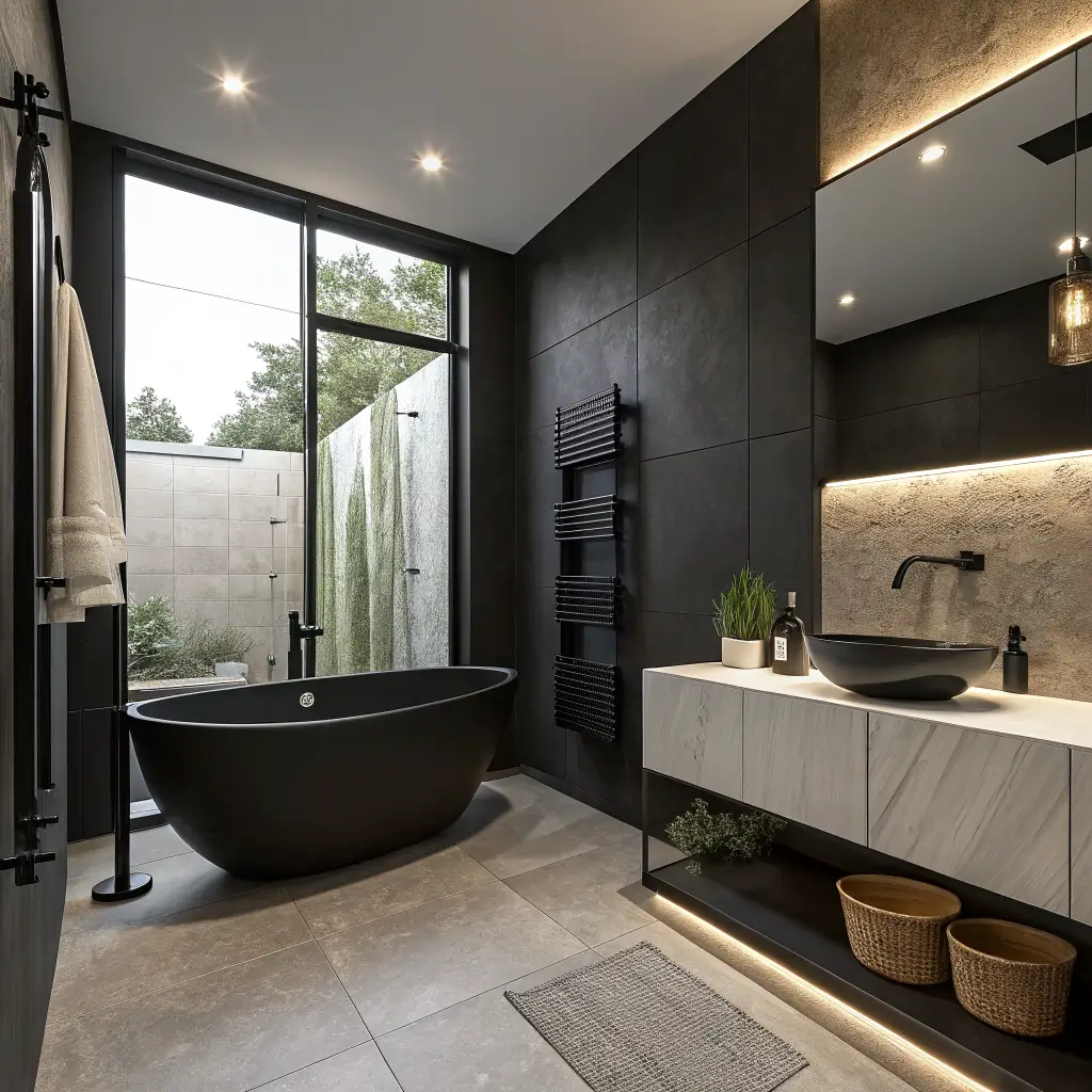 Lighting for plants: Even low-light plants need some light. If your black bathroom lacks natural light, consider adding a small grow light. I installed LED grow light strips under my floating shelves—they provide what the plants need while adding a subtle modern lighting element.
