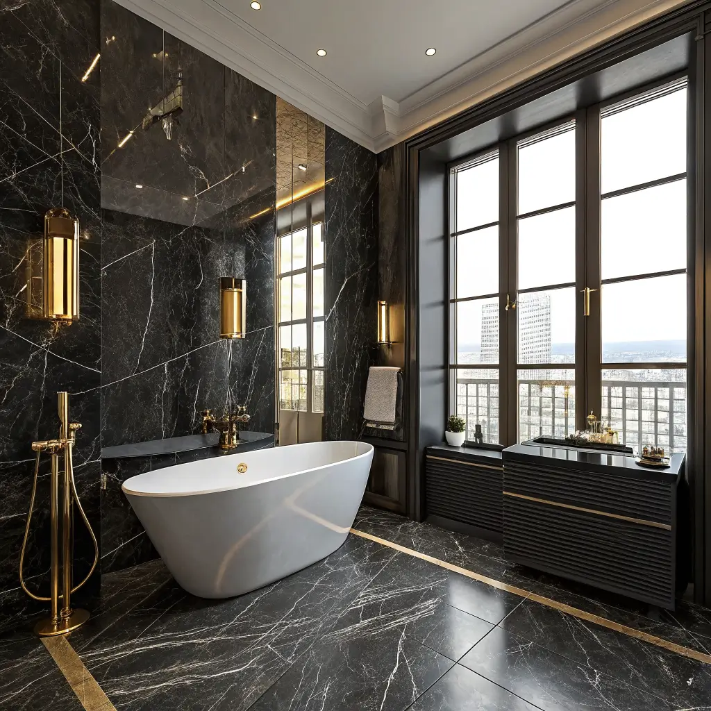 Mixing marble types: You don’t need to use one marble everywhere. I’ve combined black marble floors with white marble walls, or used black marble in the shower with complementary stone elsewhere. Mixing marbles adds sophistication if you choose stones with compatible color undertones.