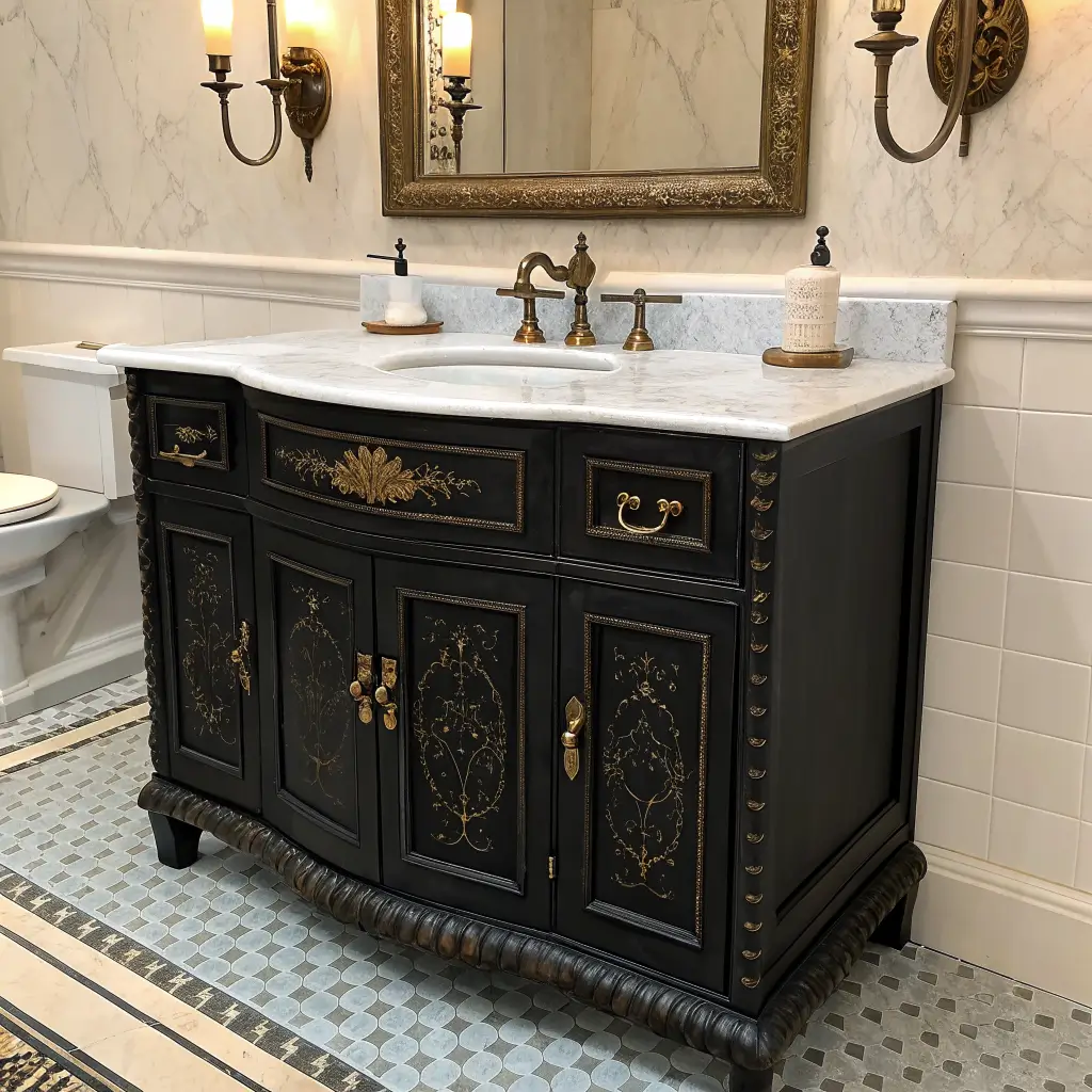If you’re someone who appreciates character over cookie-cutter design, this is your lane. I saw a stunning Victorian-inspired black vanity at an antique shop last year, and I genuinely considered ripping out my newly installed vanity just to use it. Common sense prevailed, but barely.