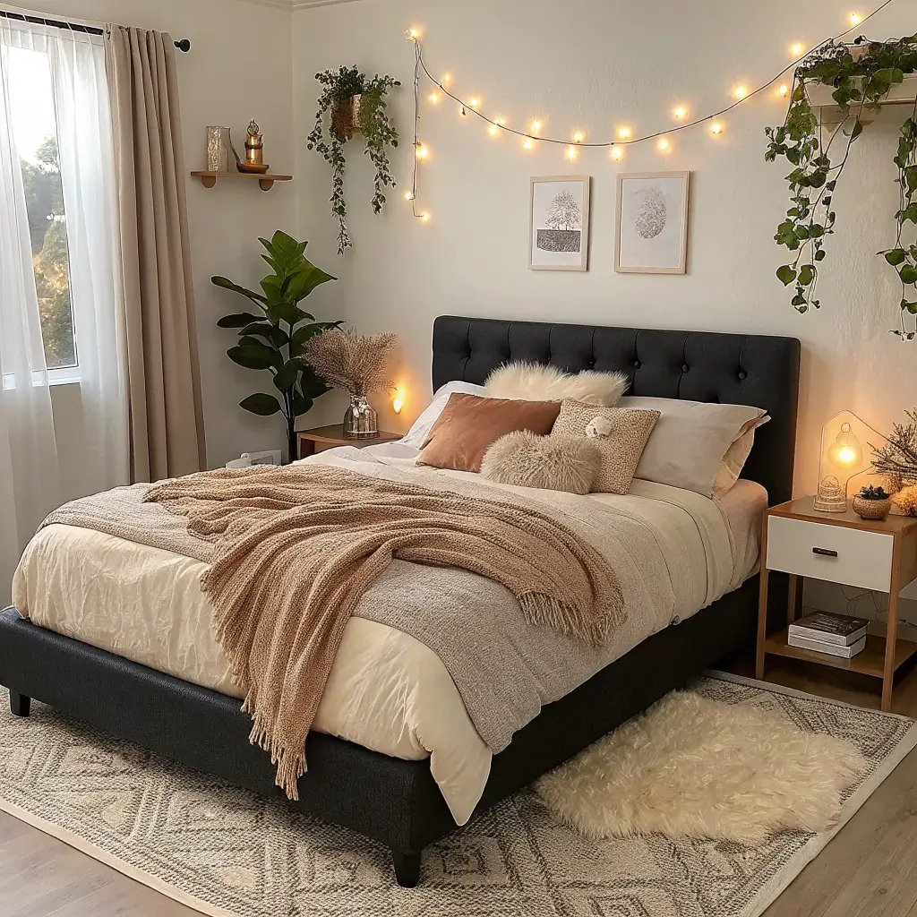 The biggest game-changer? Fairy lights or LED strips behind the headboard. Creates this amazing ambient glow that makes your black bed frame look like it’s floating. My room went from cramped cave to boutique hotel vibes with a $20 light strip from Amazon.