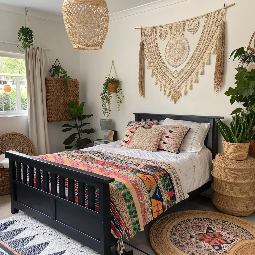 Boho style with a black bed frame? Trust me on this one. The structured frame grounds all that flowy, eclectic energy that makes boho style amazing but sometimes overwhelming.