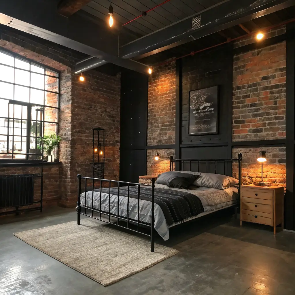 Balance the hard materials with soft textiles. Drape a chunky knit throw over that iron bed frame. Add plush area rugs over concrete or hardwood floors. Use black linen curtains instead of bare windows. The juxtaposition of rough industrial elements and soft bedroom comforts creates that perfect moody atmosphere.