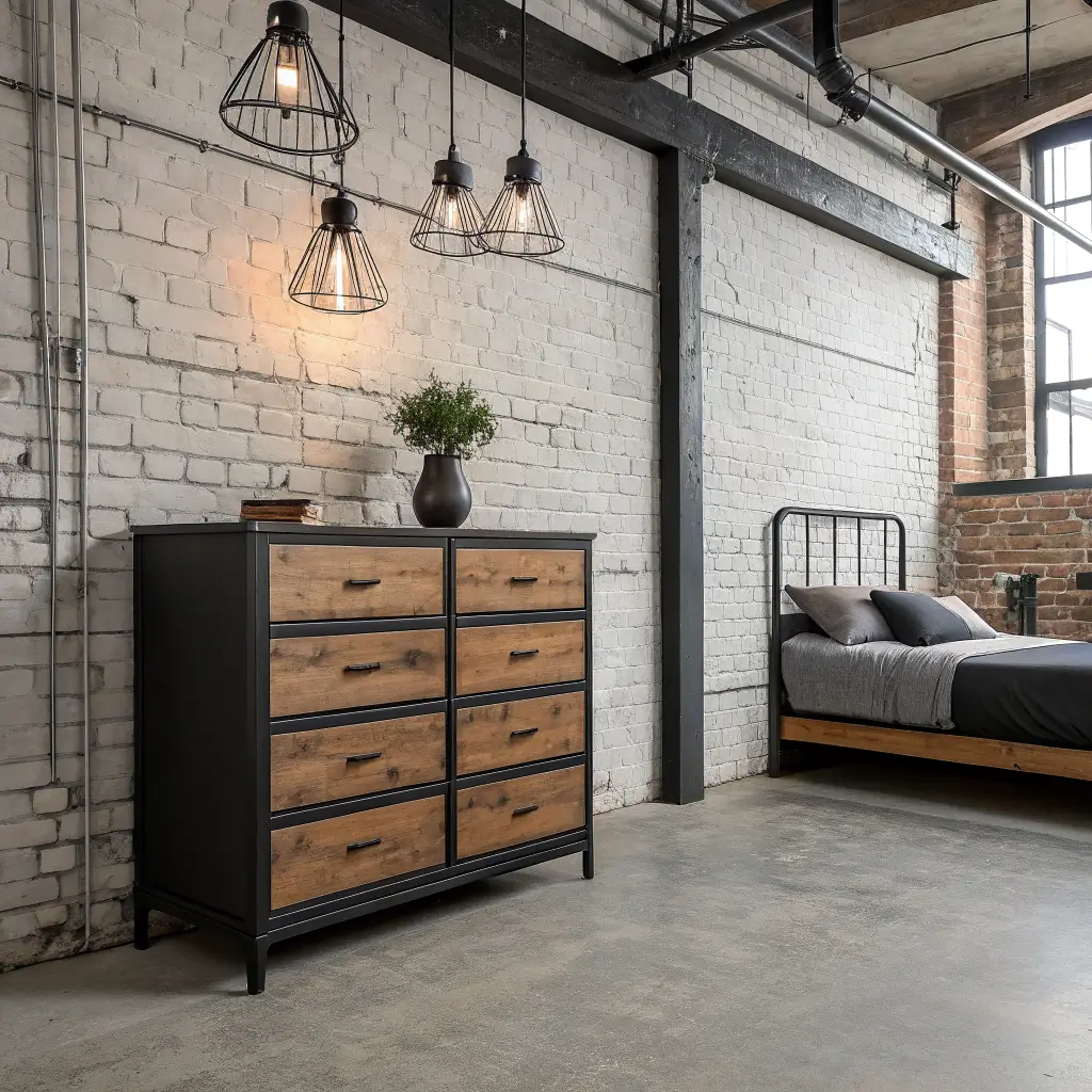 The industrial secret? Mix materials unapologetically. Black metal, raw wood, concrete – your black dresser ties all these elements together. Nothing needs to match because industrial style celebrates the mismatch.