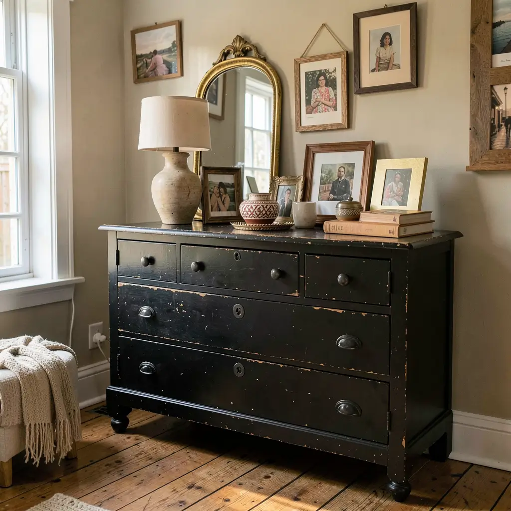 That beat-up dresser from the thrift store? Paint it black and watch the transformation magic happen. I’ve converted seven vintage dressers now (yes, I have a problem), and black paint hides more sins than confession.