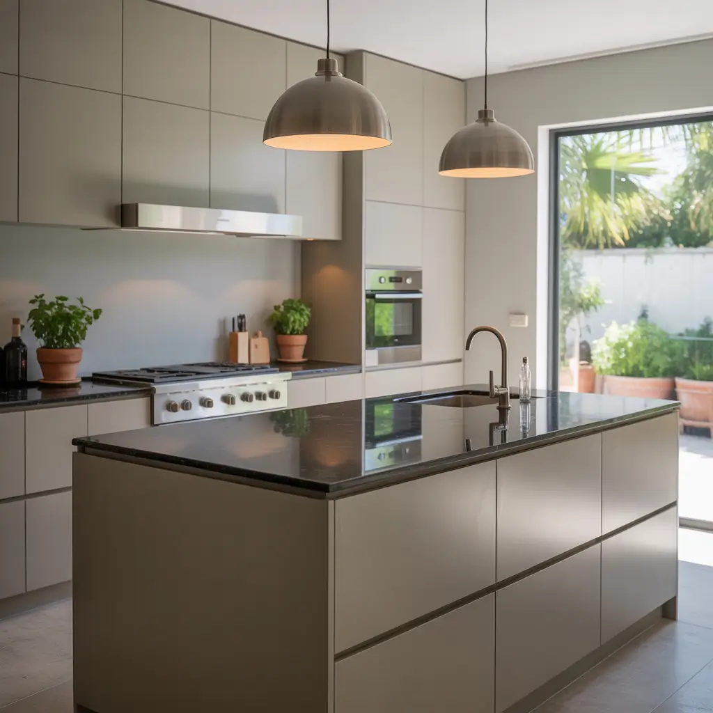 Keep your hardware simple—think sleek pulls in brushed nickel or completely handleless cabinets with push-to-open mechanisms. Every detail should serve a purpose while maintaining clean, uninterrupted lines.