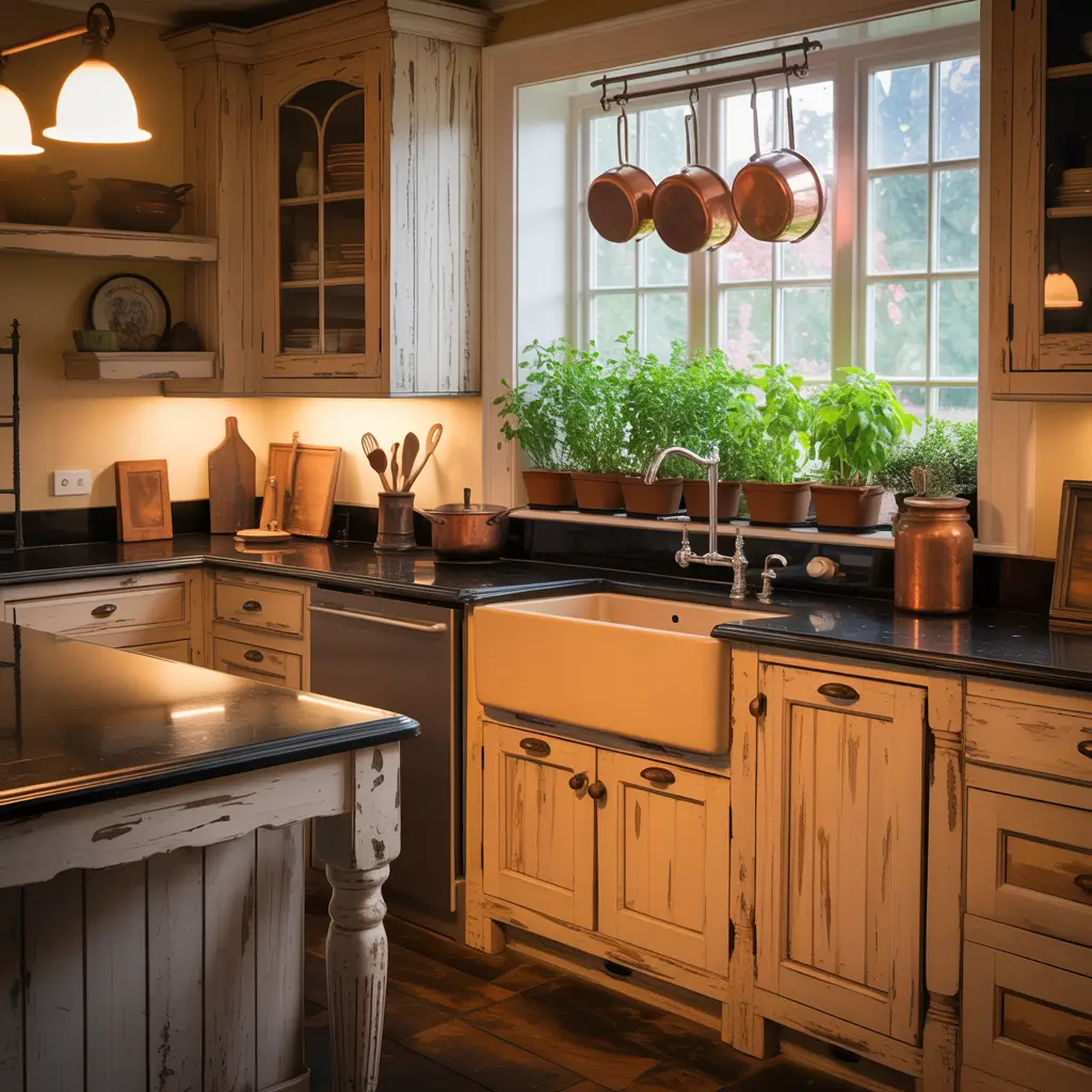 Here’s a trick I learned the hard way: don’t overdo the black. If you’ve got black granite countertops, resist the urge to do black cabinets too (unless you’re going for full drama, which, fair enough). Instead, opt for warm taupe, greige, or even sage green cabinets to create balance.