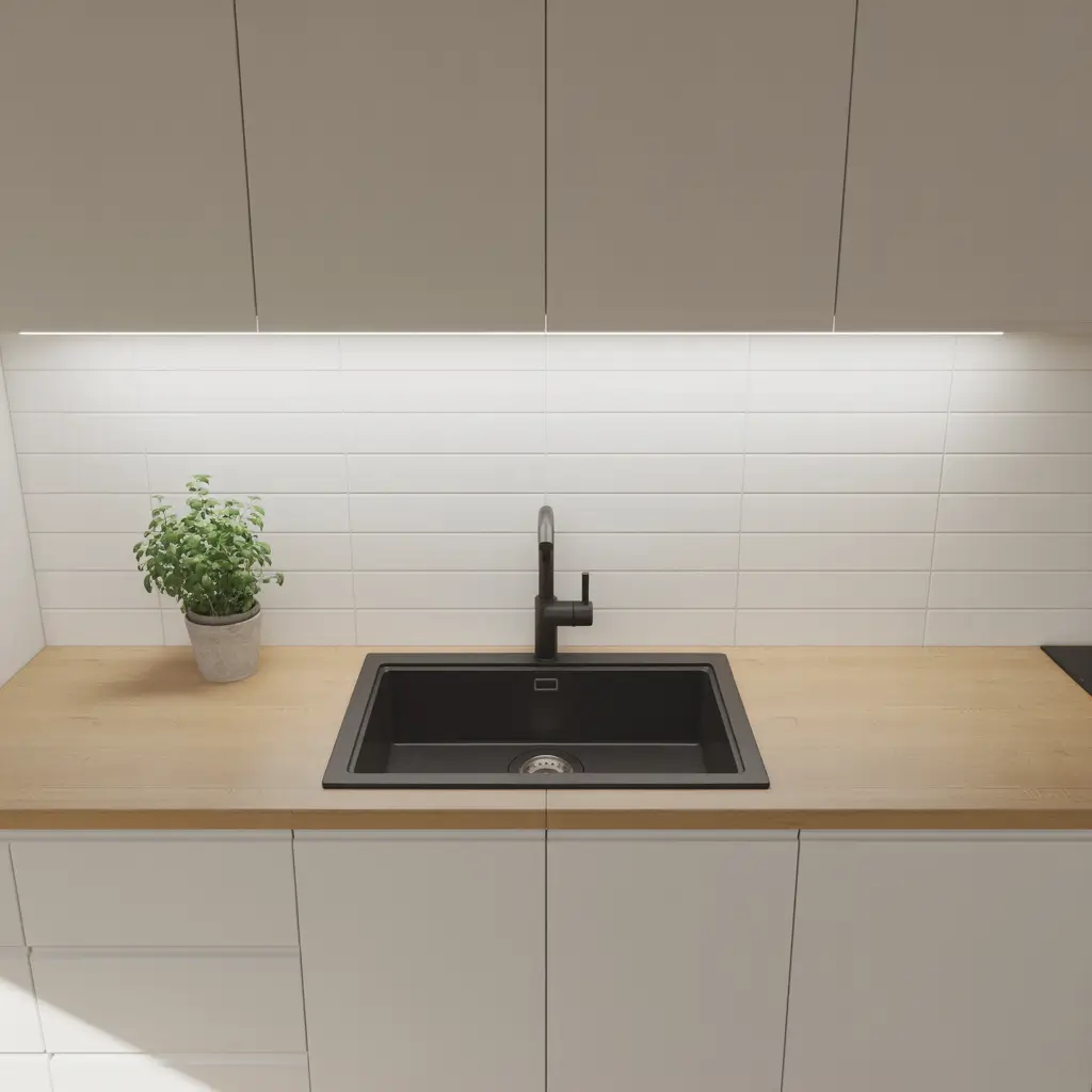 First up: lighting matters more than you think. Black absorbs light, so you need adequate task lighting above your sink area. I always recommend under-cabinet lighting or a statement pendant that illuminates the workspace while highlighting that gorgeous black finish.