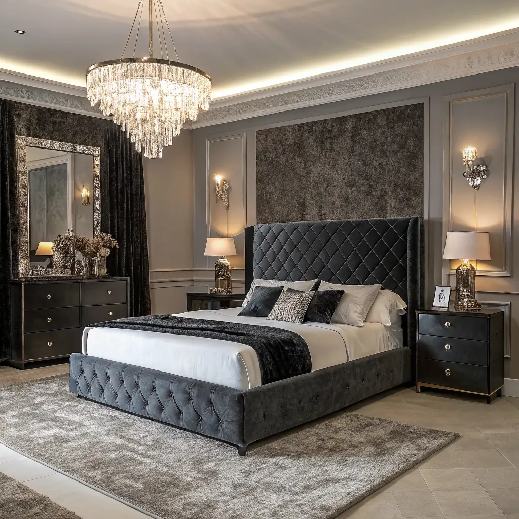 Want to feel like royalty without the whole castle maintenance thing? Enter the luxe grey velvet bedroom. This approach takes our monochrome palette and dials up the sophistication to eleven. I tried this in my guest bedroom, and now my guests never want to leave.