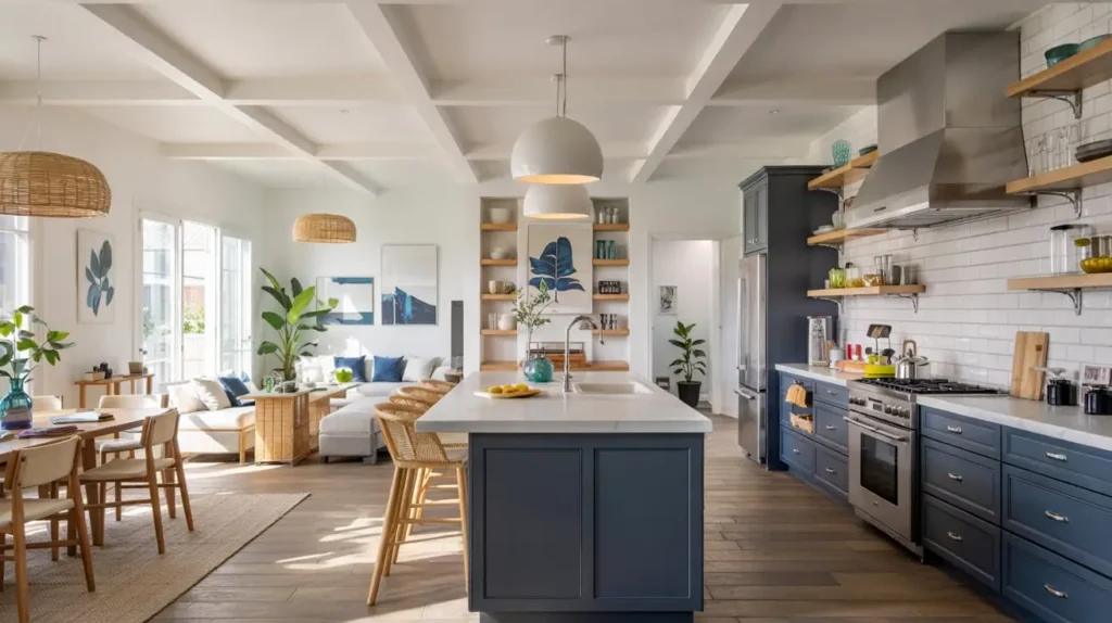 When your kitchen shares space with other living areas, consider these approaches:
