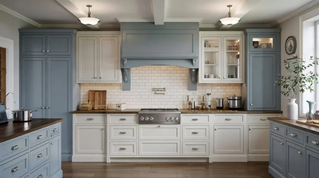 5. Two-Tone Blue and White Shaker Cabinets