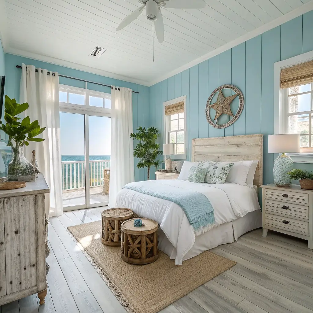 Coastal bedroom decor goes way beyond slapping a starfish on the wall and calling it a day. The modern coastal look focuses on natural textures, organic materials, and a layered blue palette that mimics the ocean at different depths. Think sandy beiges, weathered whites, soft aquas, and deeper ocean blues all working together.