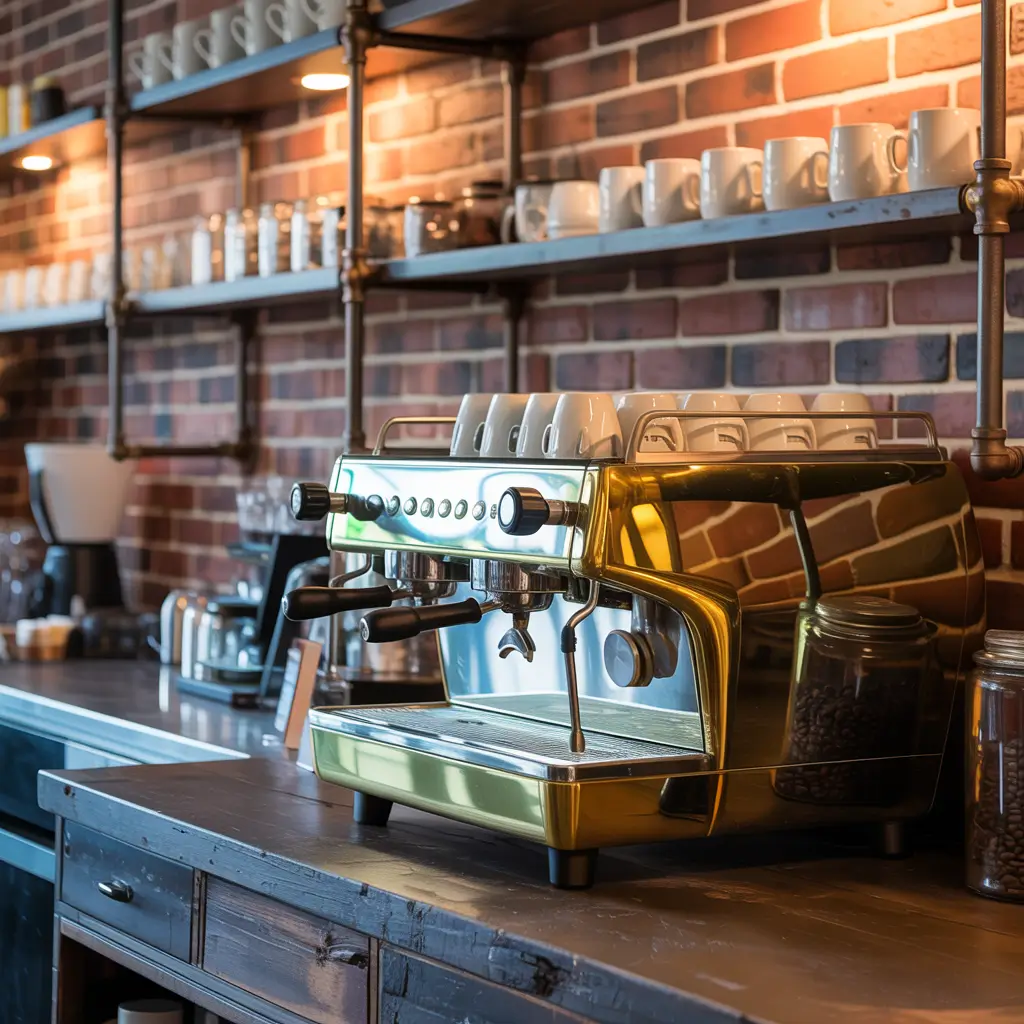 - Industrial-style coffee equipment (French press, manual grinder, etc.)