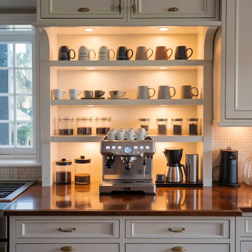 The result? A coffee bar that looks like it belongs in a design magazine, and it makes your morning coffee routine feel like an event.