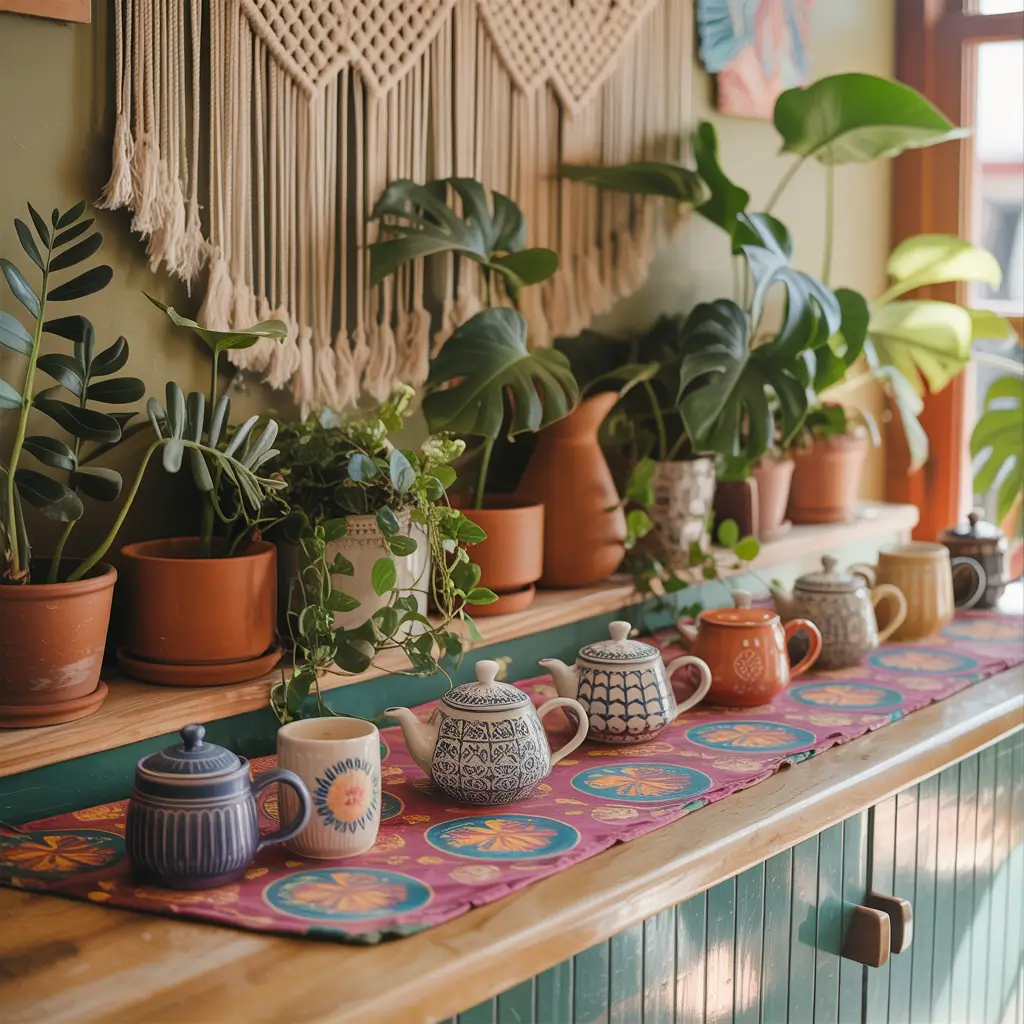I’m talking about mixing patterns, adding plants (because what’s boho without plants?), colorful textiles, and basically creating a little oasis of personality. My boho phase involved a lot of macramé (I even made a plant hanger—yes, I became that person), colorful mugs from different countries, and a woven basket for storing tea.