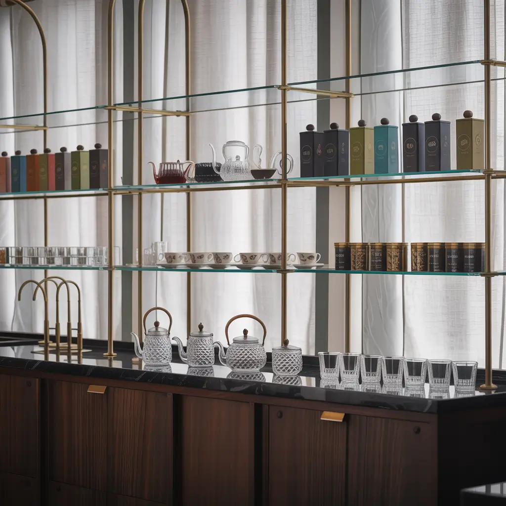 11. Elegant Glass Coffee and Tea Bar Display