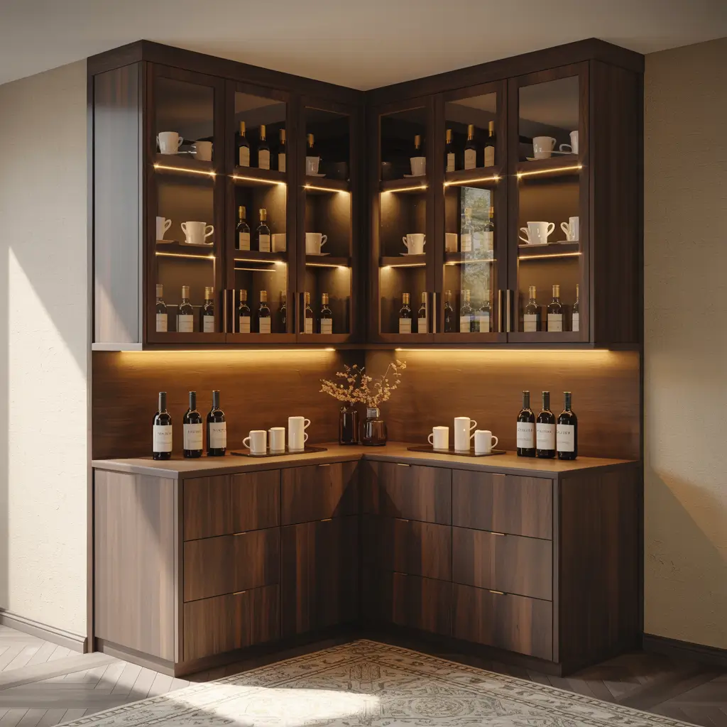 Dead corners are the worst, so let’s fix that. Most homes have that awkward corner that collects random stuff and never quite works. Converting mine into a dedicated coffee and wine cabinet was genuinely one of my better decisions.