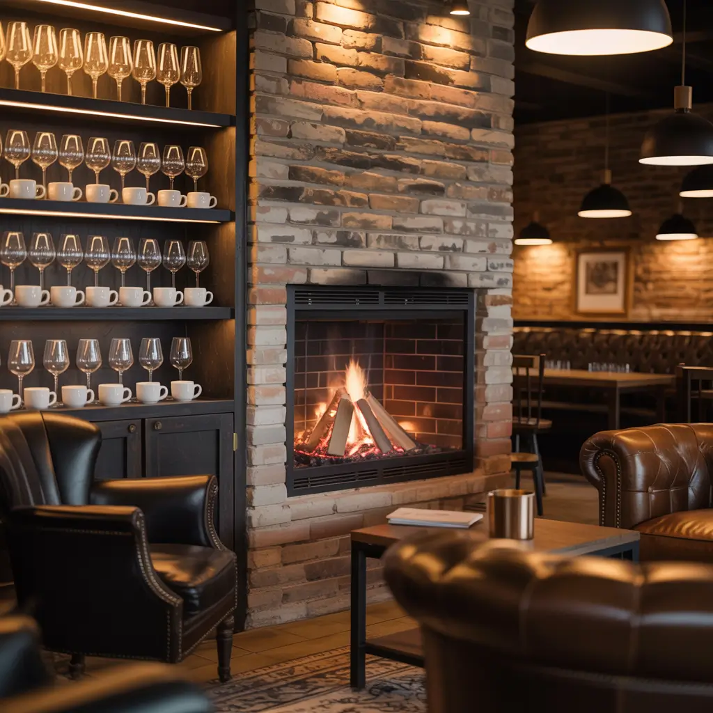 I converted the built-in shelving flanking my fireplace into a bar setup. One side holds coffee equipment and mugs, the other showcases wine bottles and glasses. The fireplace itself becomes the focal point, with the bar as supporting actors that enhance the scene.