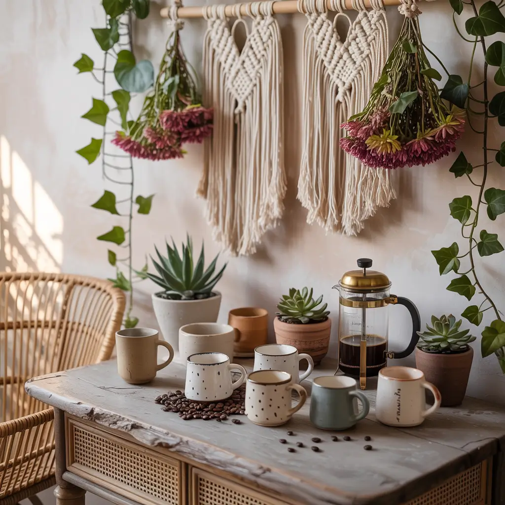 Free-spirited, eclectic, and unapologetically colorful—the boho coffee station embraces maximalism in the best possible way. This aesthetic mixes patterns, textures, and global-inspired elements to create something that feels collected and lived-in rather than designed.