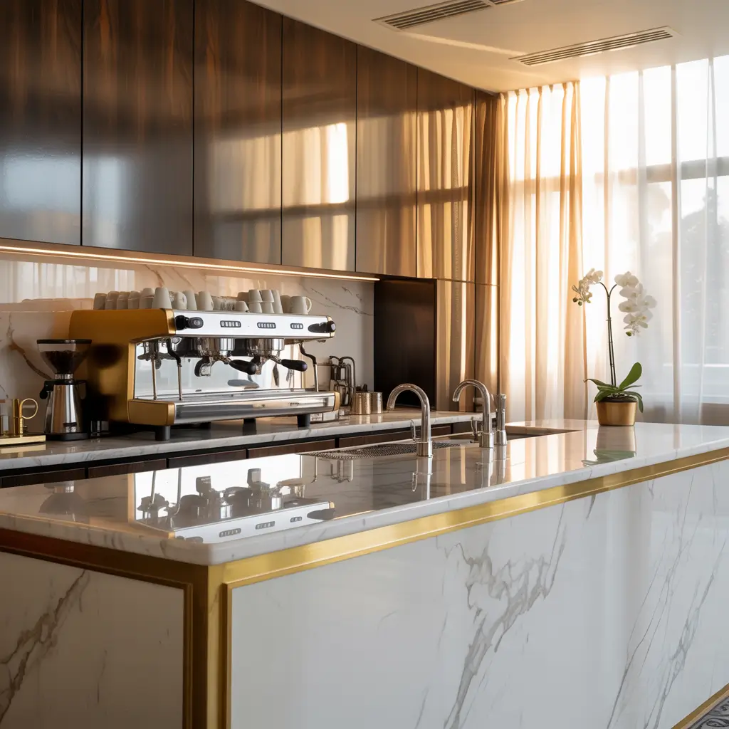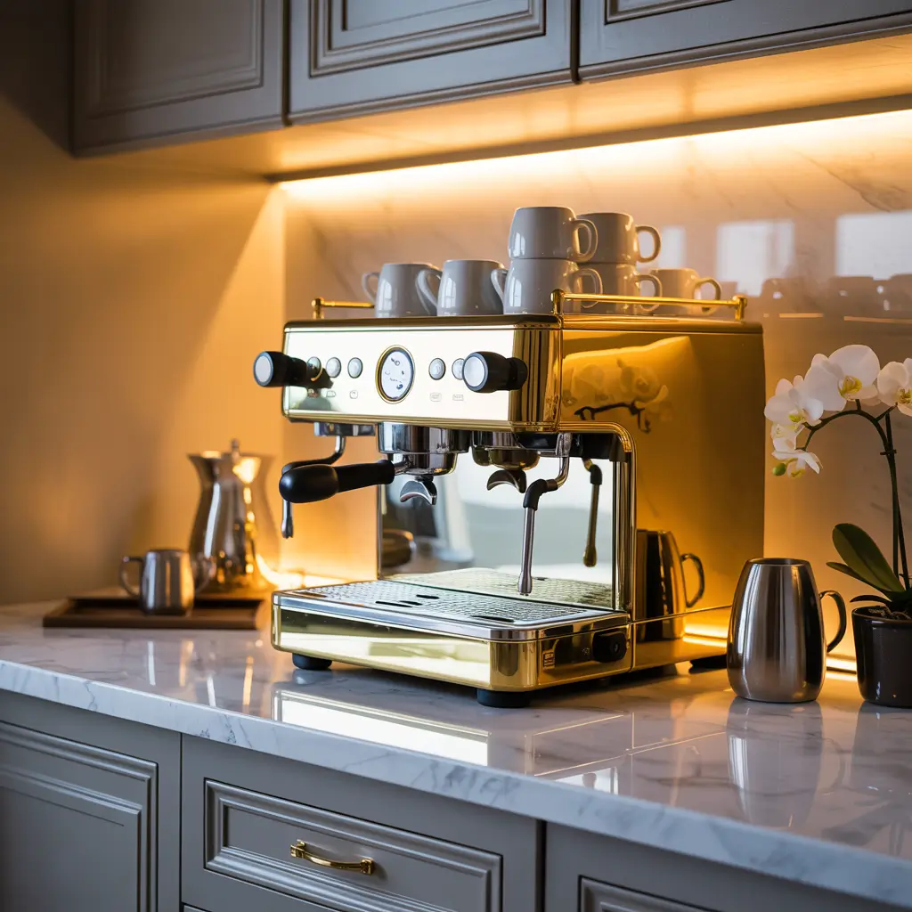 The key word here is accented—you’re not gold-plating everything in sight. Instead, you’re using gold strategically to elevate and highlight specific elements. Think of it as jewelry for your coffee bar.
