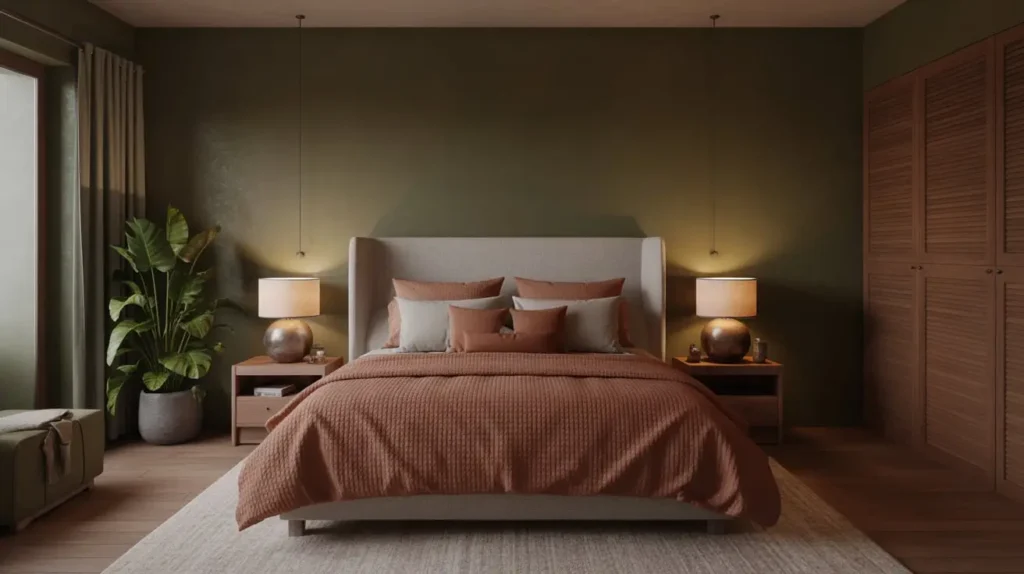 Add greenery to complete the natural aesthetic. Plants look absolutely stunning against earth-toned walls. The living green against rich browns and terracottas creates that perfect organic sanctuary vibe. Plus, plants improve air quality, so you’re literally breathing better 🙂