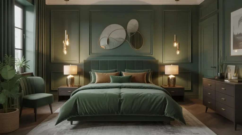 Pair dark green walls with jewel-toned accents—sapphire blue pillows, ruby red throws, or amethyst purple curtains. Add in gold or brass fixtures to elevate the luxury factor. A gold-framed mirror against dark green walls? Chef’s kiss.