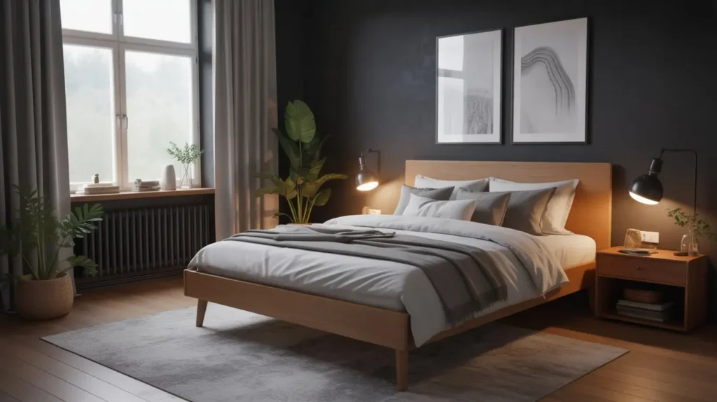 Natural materials are non-negotiable. Light wood (like birch or ash) creates stunning contrast against dark walls. Add in linen bedding, wool throws, and maybe a sheepskin rug. These natural textures prevent the minimalism from feeling cold.