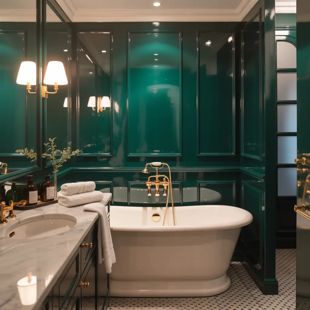 Sometimes you want luxury without the moodiness, and that’s where the deep green and white combo absolutely shines. This pairing feels fresh, clean, and undeniably elegant. It’s like the bathroom equivalent of a perfectly tailored suit—classic and timeless.