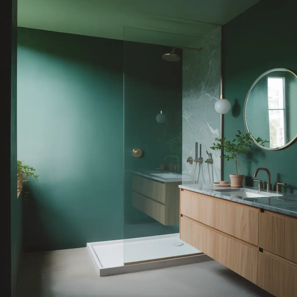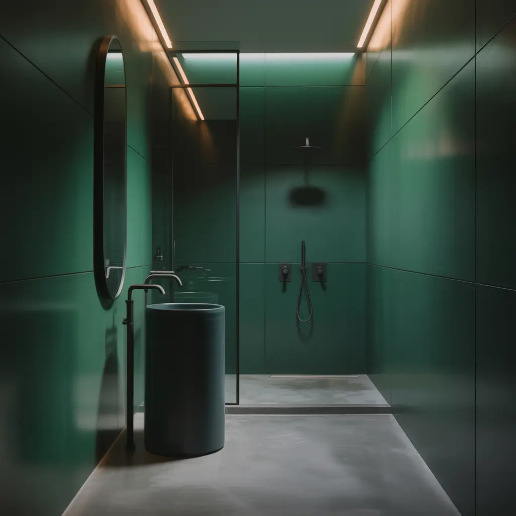 Minimalism and deep color might seem contradictory, but hear me out. A modern minimal bathroom in deep green is all about clean lines, simple forms, and letting the color be the statement. No fussy details, no excessive decoration—just pure, sophisticated simplicity.
