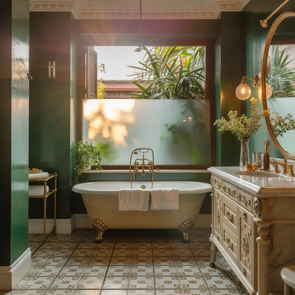 Vintage bathrooms have this undeniable charm that modern designs often lack. When you incorporate deep green vintage-style tiles, you’re creating a space that feels like it has history and character—even if you just installed it last Tuesday.