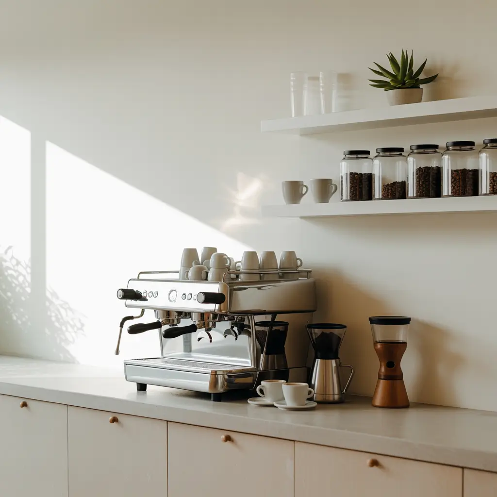 Pick a cohesive color scheme—whites, grays, and natural wood tones work best. Your coffee maker should ideally be stainless steel or white to maintain that clean aesthetic. I know, I know, you love that bright red espresso machine, but it’s gotta go find another home if you’re committed to this look.