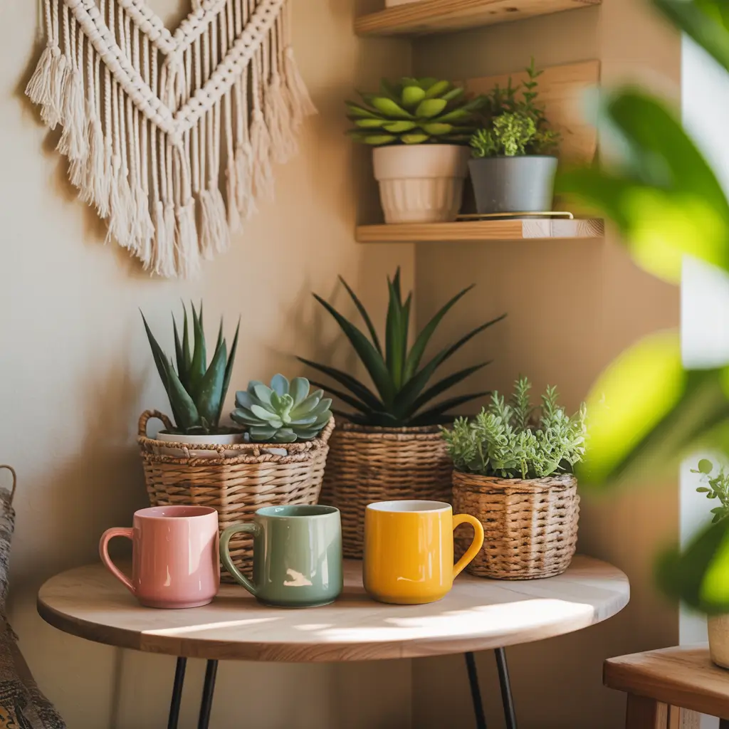 Now we’re talking personality. If you’re the type who loves layers, textures, and a “more is more” philosophy, the boho coffee corner is calling your name.