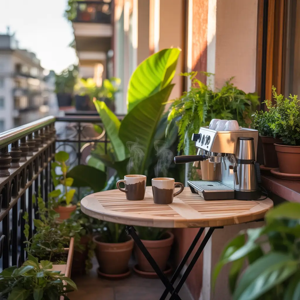 Who says coffee bars are only for indoors? If you’ve got a small balcony or patio, you can create an outdoor coffee corner that’ll become your favorite spot.